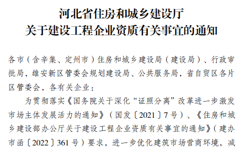 關于建設工程企業資質有關事宜的通知
